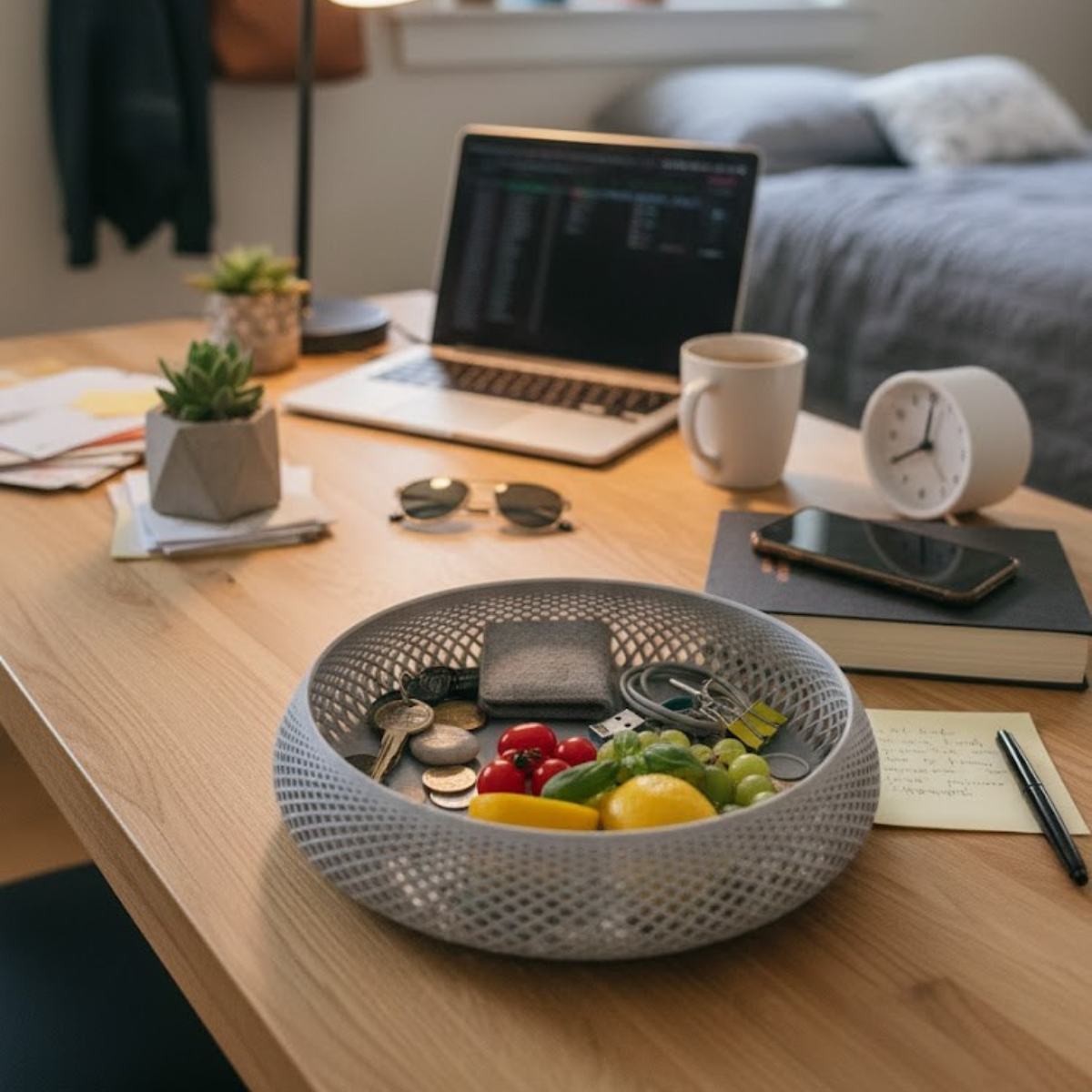 Dimensions : Diamètre généreux d’environ 20 cm, idéal pour accueillir vos clés, lunettes, montres ou accessoires de bureau.